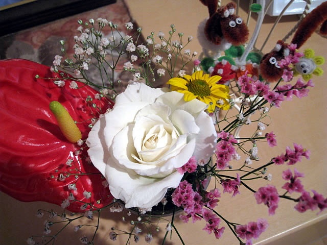 娘が学校のクラブでフラワーアレンジメントを習い、持って帰ってきた。