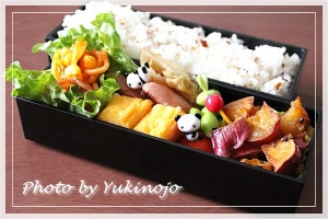 とにかく今日のお弁当は大学いもを大量に入れて嵩増ししてごまかすことに。