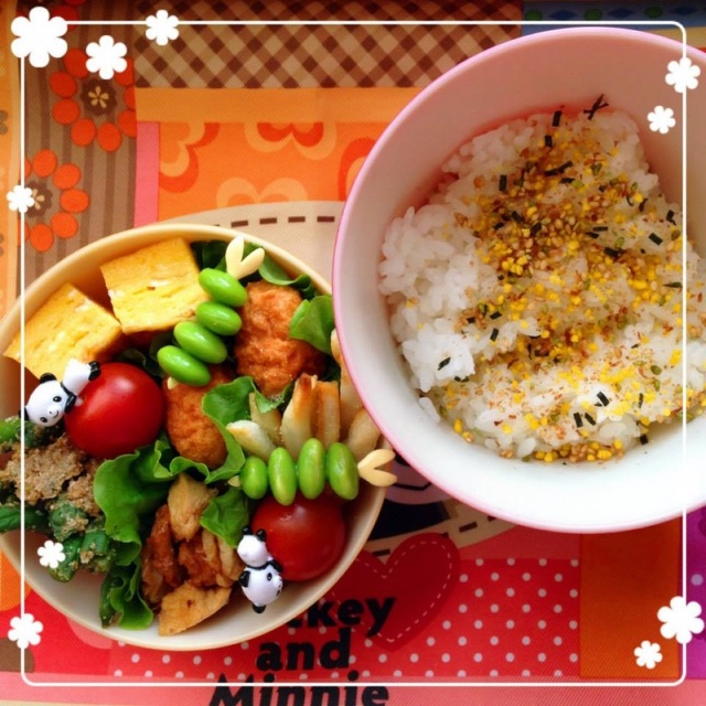 チキンナゲット 厚揚げとちくわのオイスタ炒め 玉子焼き フライドポテト いんげんの胡麻和え 枝豆 プチトマト ふりかけご飯 (*+_+)ノ・・・ネ・・ネムゥ・・・・・しかし、お弁当を作らねば…ということで起きました。 今のクラスは4階にあるらしく、学校内コンビニとか食堂に行くのが面倒臭いらしい… さて、今日から7時...