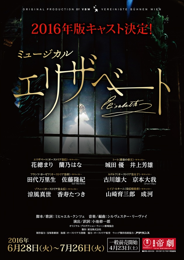 これって帝劇、梅芸、そしていつも名古屋とばしなに来年はエリザベート日本初演から20周年にあたるからか中日劇場にもきてくれる!