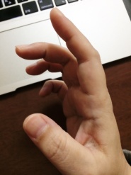 で、今…それから5時間程経ったわけなんだが…写真の状態から右手指の親指以外は伸ばすことも曲げることもできなくなったガ━━ΣΣ(゚Д゚|||)━━ン!!